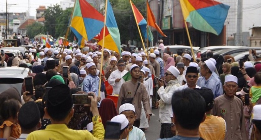 Surabaya — Ribuan umat Islam memadati kawasan Wisata Religi Sunan Ampel dalam prosesi kirab Haul Agung Sunan Ampel dalam rangka Haul Sunan Ampel